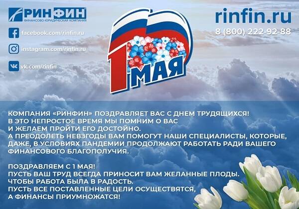 Компания «Ринфин» поздравляет вас с Днём трудящихся!