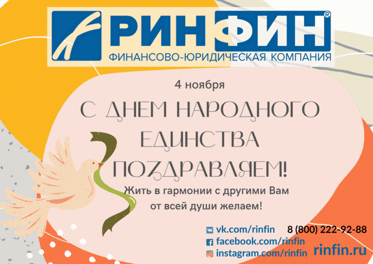 Коллектив АО «РИНФИН» поздравляет с Днём народного единства!