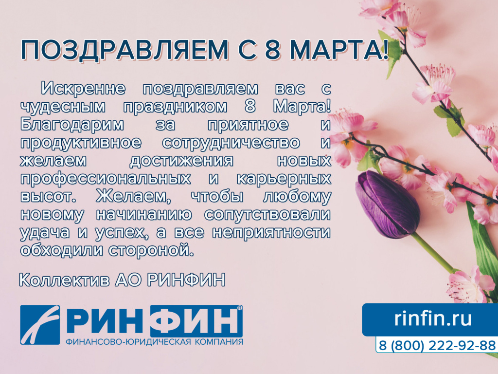 От лица консалтинговой компании "РИНФИН" хотим поздравить вас с Международным женским днём — 8 марта!