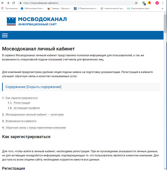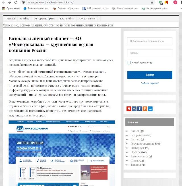 Перечень сайтов, неправомерно использующих товарный знак Мосводоканала (приведен на официальном сайте Мосводоканала):