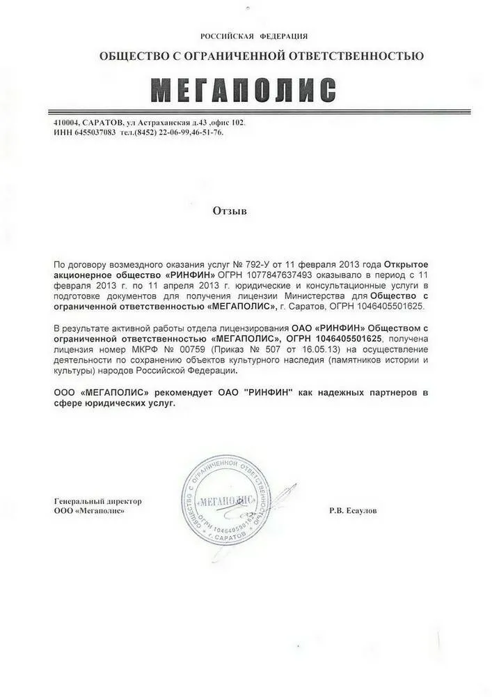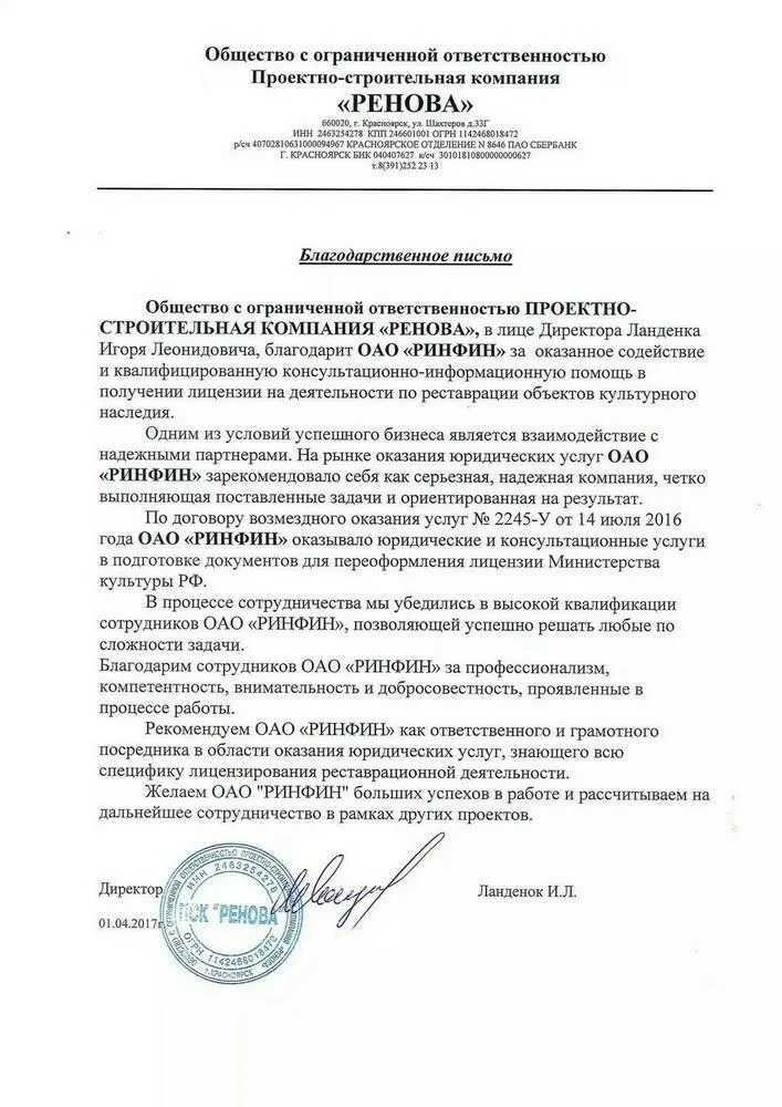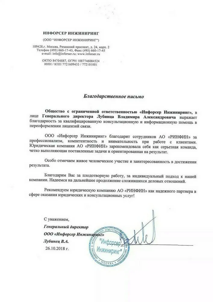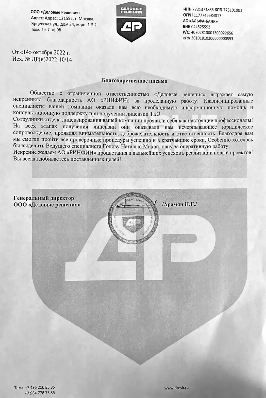 АО «РИНФИН» оказывает сопровождение сделок купли-продажи готовых фирм.