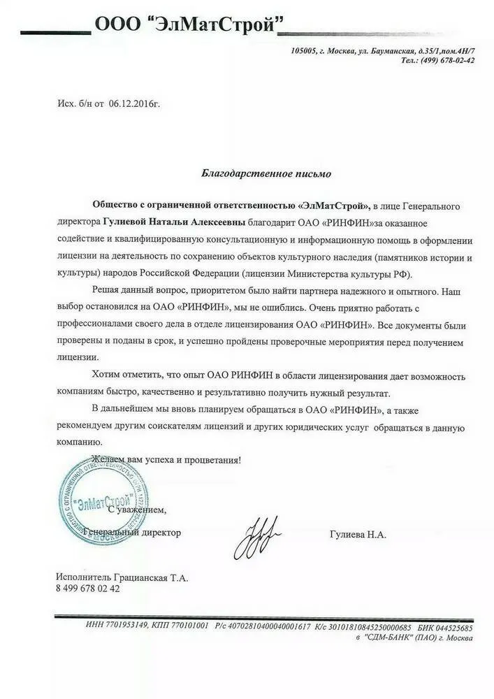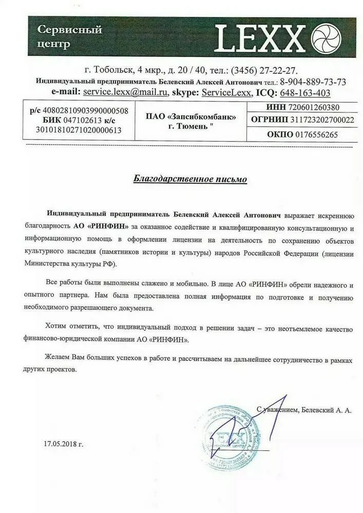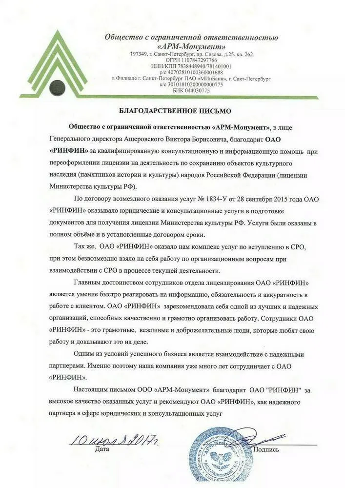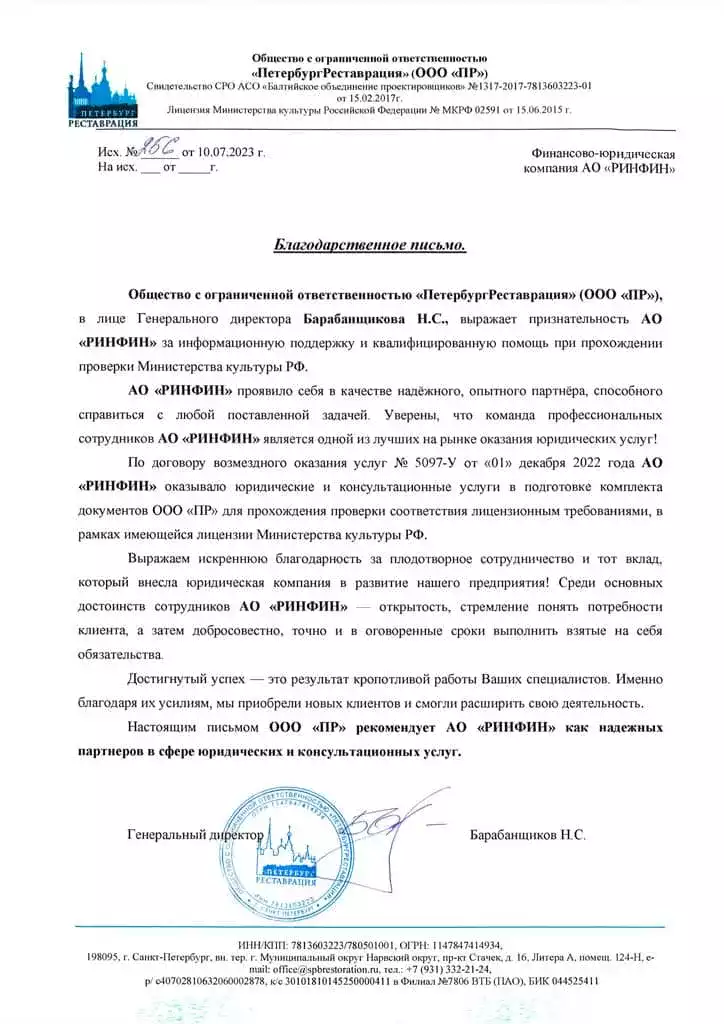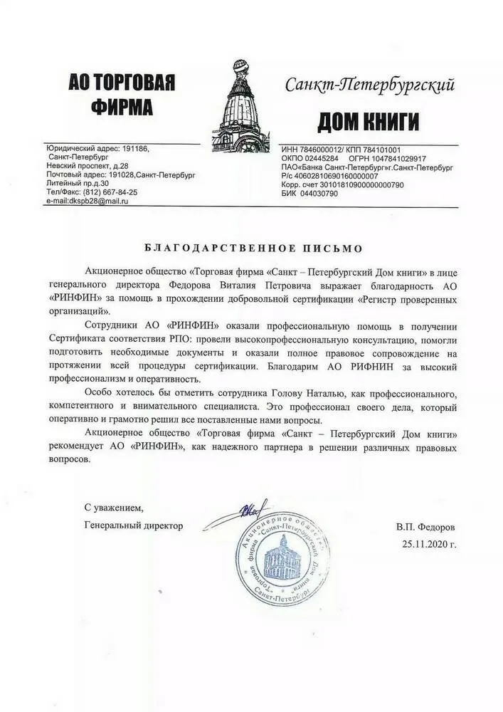 АО «РИНФИН» оказывает сопровождение сделок купли-продажи готовых фирм.