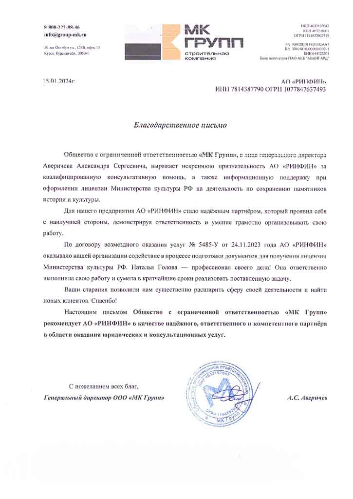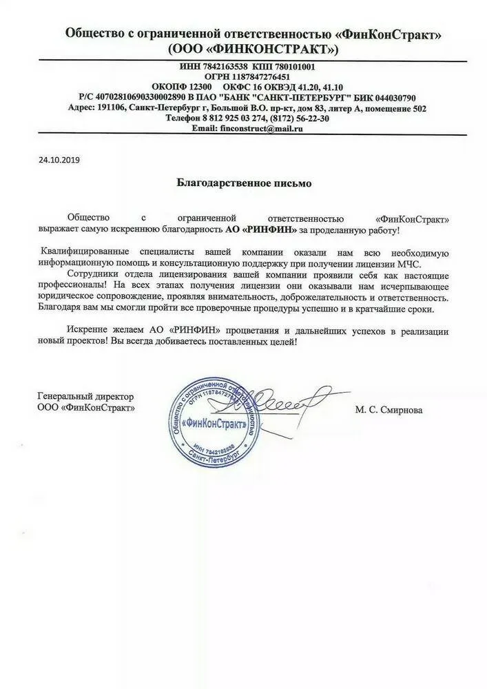 Профессиональное сопровождение снижает риски отказа, задержек и штрафов. «РИНФИН» поможет с полным сопровождением — от подготовки до финального закрытия.